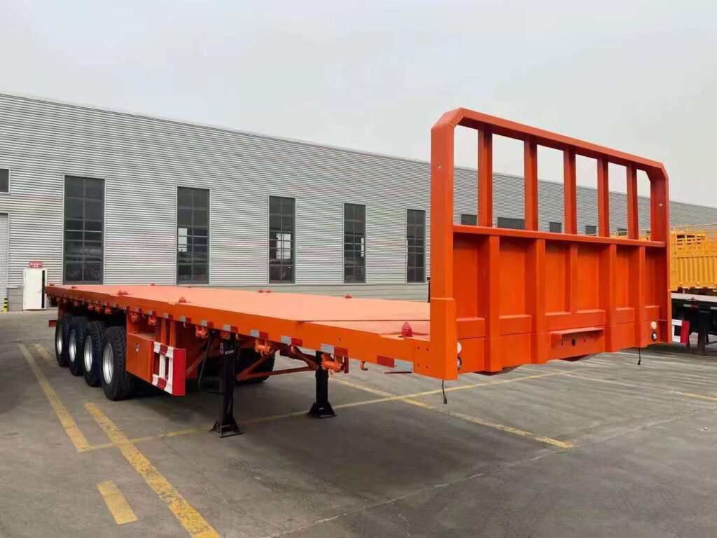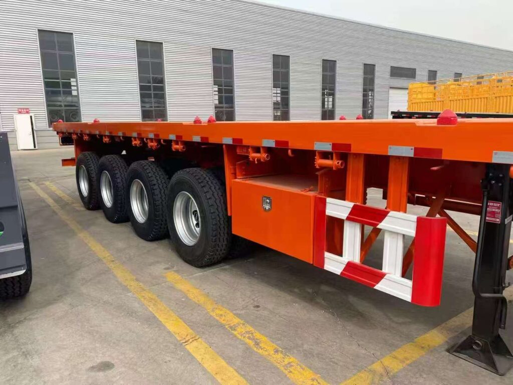 This batch of models focuses on the large cargo transportation needs of overseas markets such as Africa and Latin America, and achieves multiple upgrades in carrying capacity, structural design, and localization adaptability. The vehicle is equipped with a three-axle reinforced axle and a thick-walled steel spring suspension, paired with large load vacuum tires, which can not only adapt to the heavy load operation scene in ports and mining areas, but also cope with the rugged rural roads in Africa and Latin America, with both passability and stability. In terms of structural design, this flat semi-trailer fully considers the actual overseas transportation scenario: the cargo platform adopts anti-slip steel plate, effectively preventing the cargo from sliding during transportation; The side can be equipped with removable guardrails to meet the transportation needs of general goods and large items; At the same time, it supports customizing the panel height according to customer requirements, the specification of the towing interface, as well as the adaptation and modification of left/right rudder towing vehicles.
